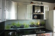 Фасады МДФ под эмалью и лаком, столешница искусственный камень , мойка врезная подстольная , втроенная техника- плита и духовка 45см, вогнутые и выгнутые фасады.